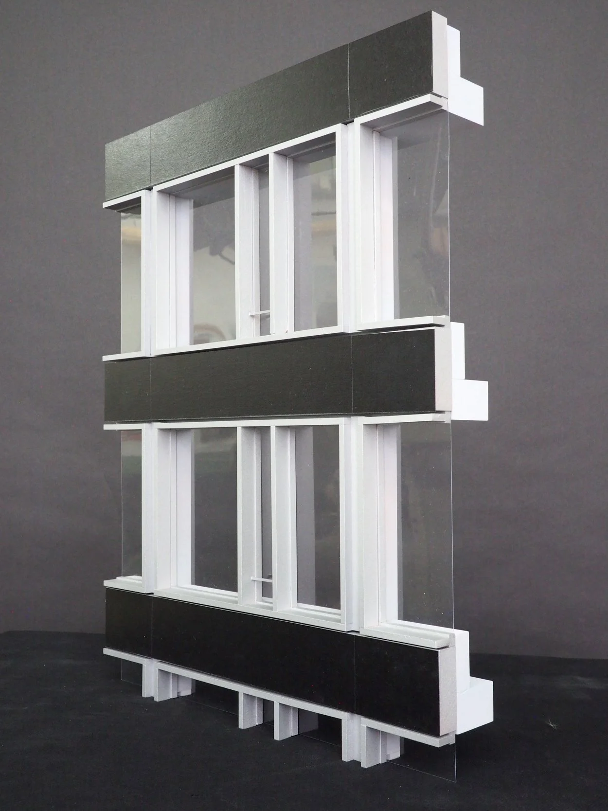 Neben der Integration in das Gesamtbild zeichnen sich die beiden Gebäude gleichzeitig mit einer eigenen, starken Identität aus und schaffen ein attraktives Ensemble, bei dem auch die benachbarten Bauten des Suurstoffiareals mitberücksichtigt werden. Die neuen Bauten S43/45 lassen, sowohl in der städtebaulichen Anordnung, wie auch in der Fassadengestaltung mit ihrer farblichen Tonalität den Nachbarbauten die nötige Präsenz.